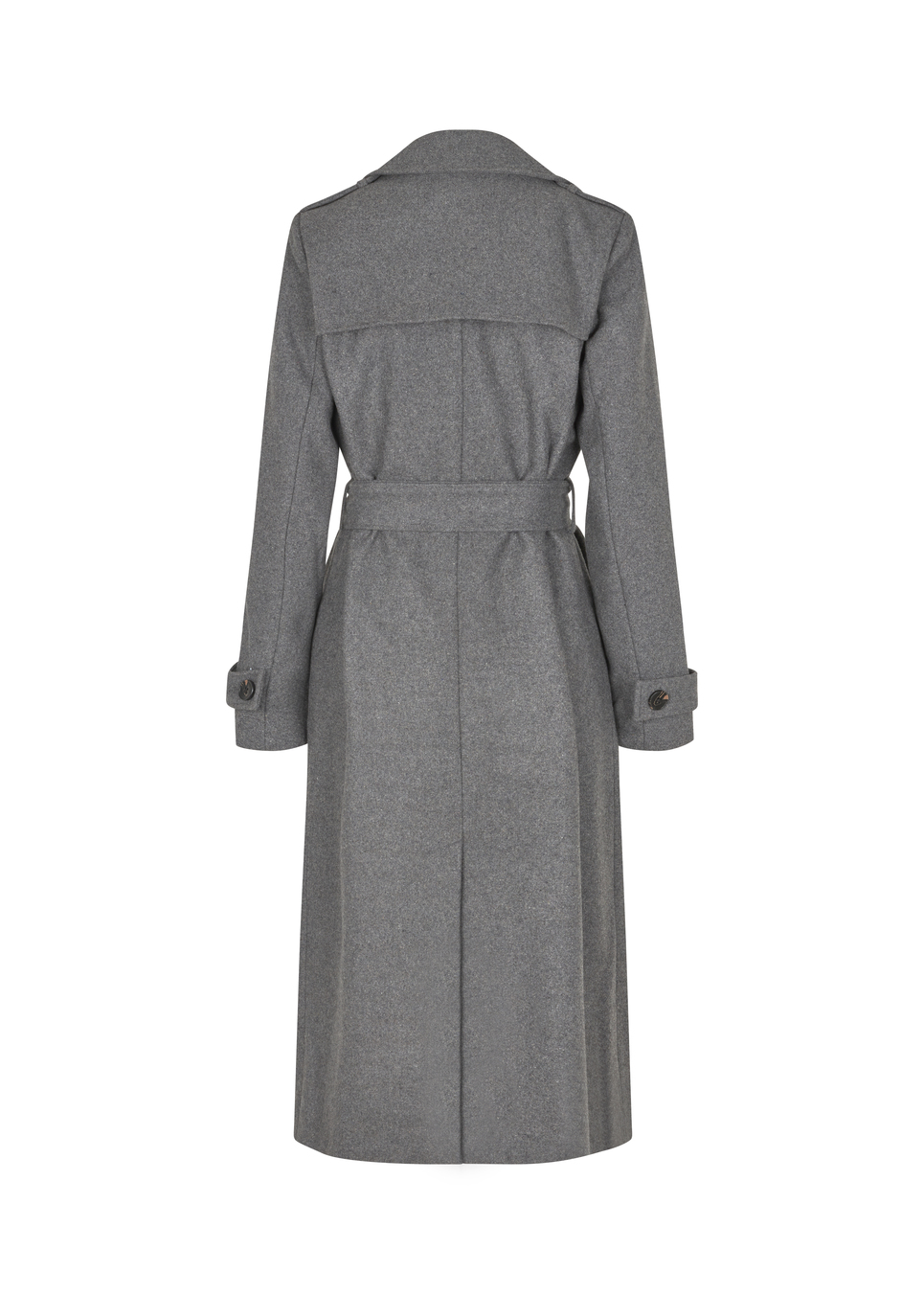 Sehr schöner, 2 reihiger Woll-Trench mit Gürtel, großen Taschen,
